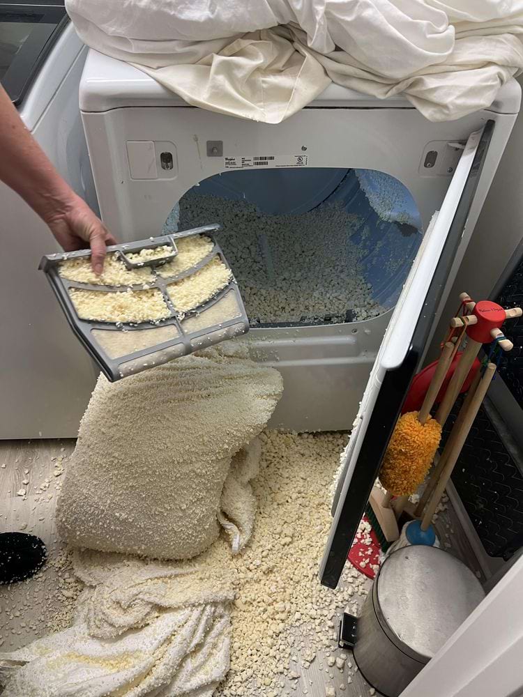 В комментариях писали, что стоило стирать только наволочку, а не всю подушку целиком, и что наполнитель подушки очень напоминает попкорн 🍿