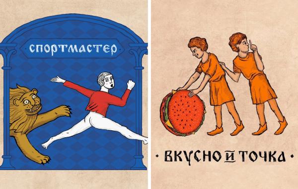 Знаменитые логотипы смешно перерисовали, представив, как бы они выглядели, живи мы в Средневековье арт 12.10.2023 398