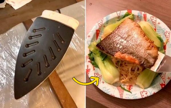 Шеф-повар готовит изысканные блюда, используя только то, что есть в гостинице, а именно утюг, кофеварку и чайник еда 24.12.2020 365