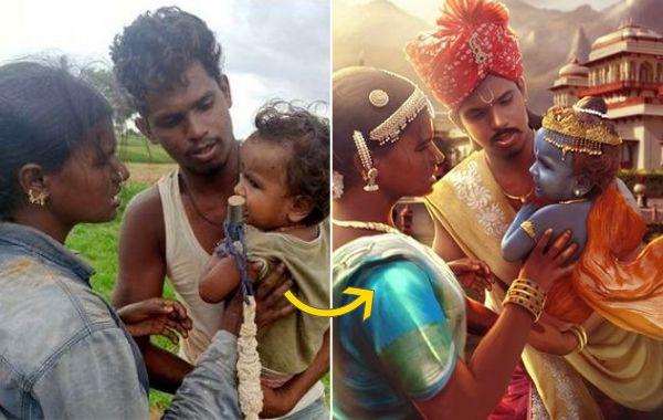 200 тысяч человек подписались на индийского художника после того, как он превратил мальчика в Кришну до и после 24.08.2020 246