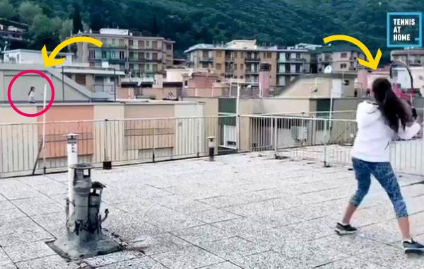 Итальянцы играют в теннис во время карантина, находясь на разных крышах домов Видео-приколы 20.04.2020 125