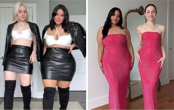Две подруги носят одинаковую одежду разного размера, чтобы показать, что стиль не зависит от телосложения стиль 19.06.2024 170