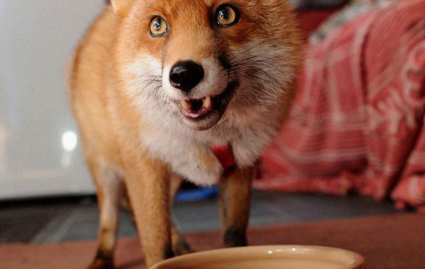 Лисица,считающая себя домашним псом