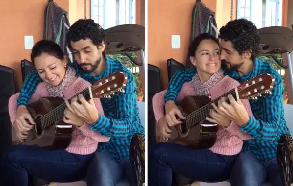 Пара вместе сыграла на одной гитаре, и такого исполнения и влюблённого взгляда вы ещё не видели Видео-приколы 15.02.2021 179