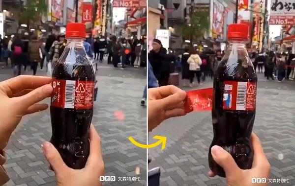 В Японии этикетку бутылки Coca-Cola можно в одно движение превратить в праздничный бант Видео-приколы 07.12.2020 346