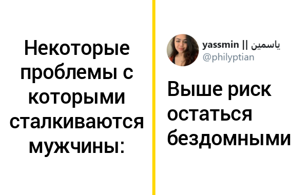 Психотерапевт написал 20 причин, почему мужчинам живётся тяжелее, чем женщинам, и с этим трудно поспорить соцсети 24.11.2020 1108