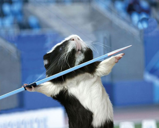 Морские свинки были наняты в фонде спасения животных в обмен на пожертвование и сфотографированы в уютной студии. Затем при помощи компьютерной графики их перенесли на олимпийские спортивные площадки. Во время съёмок ни одно животное не пострадало.