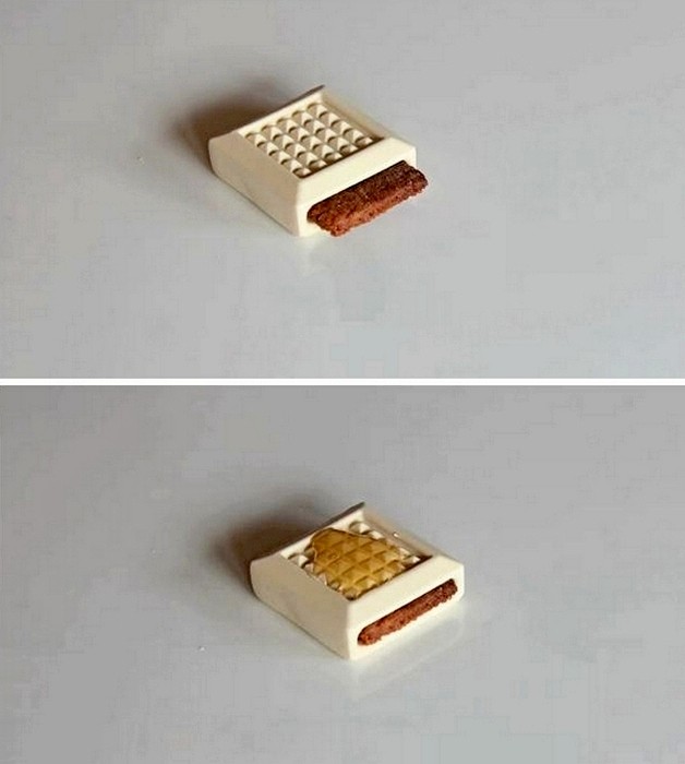 Идея Sweet play очень проста. Модульная конструкция состоит из трех видов шоколада - белого, молочного и черного, который можно улучшать разными добавками. Так, в батончике из черного шоколада есть отверстие, чтобы добавить туда кусочки фруктов, молочный шоколад содержит выемки для орехов, а верхушка батончика из белого шоколада выполнена в виде площадки для жидких добавок вроде топинга или желе. К тому же все три батончика полые внутри: это слоты для пластин из печенья или вафель, а может, пластин из карамели и нуги.