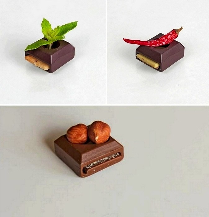 Таким образом, потребитель имеет возможность самостоятельно построить для себя идеальную шоколадку, играя компонентами так, как ему угодно. Праздник вкуса, рай для желудка, наслаждение для сладкоежки, - вот то, что можно сказать в адрес дипломного проекта Sweet Play от Эльзы Ламбинет (Elsa Lambinet). Вероятно, она сама - та еще любительница шоколада, иначе ее проект не был бы таким вдохновенно сладким.