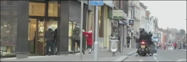 Примерно такая история приключилась в феврале прошлого года в английском городке Нортгемптон. Шестеро грабителей на скутерах подъехали к магазину Rolex и стали колотить витрины. Всё это происходило среди бела дня, на глазах у множества людей. Никто даже с места не сдвинулся.