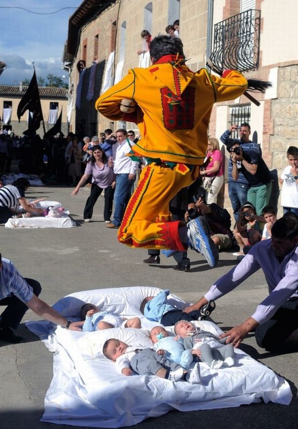 Для этого в период празднования Тела Господня (Corpus Christi) участники местного братства Santísimo Sacramento de Minerva обряжаются в желто-красный костюм дьявола, надевают на лицо маску и берут в руки хлыст или дубинку. Затем, прогулявшись по улицам города и вдоволь напугав местное население, они продвигаются к главной площади, где уже на мягкой перине лежат младенцы, окруженные толпой зрителей. Через группу новорожденных детей ряженый дьявол Колачо с разбегу совершает прыжок, унося с собой все зло и болезни.