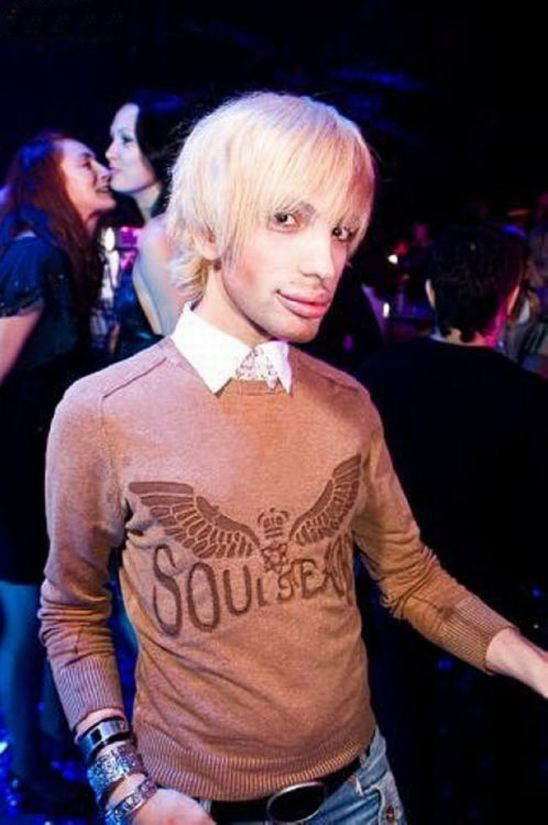 Говорят, что когда на свет родился Вячеслав, все модельеры планеты проснулись в холодном поту.. А если серьезно, то те тараканы которые водятся у него в голове, должны быть с ладошку величиной. Просто жесть что он с собой вытворяет..