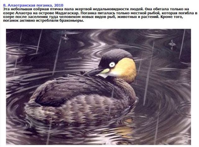 Животные, которые вымерли за прошлые 10-20 лет Животные природа 28.08.2012 762 Как бы это не было грустно, но эта популяция видов животных, которые охранялись законом стран по всему миру, полностью вымерли и исчезли с лица земли. Жаль. Поделиться в соц. сетях