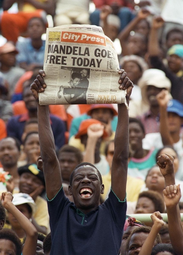 Парень ждет возвращения Нельсона Манделы домой впервые за 26 лет