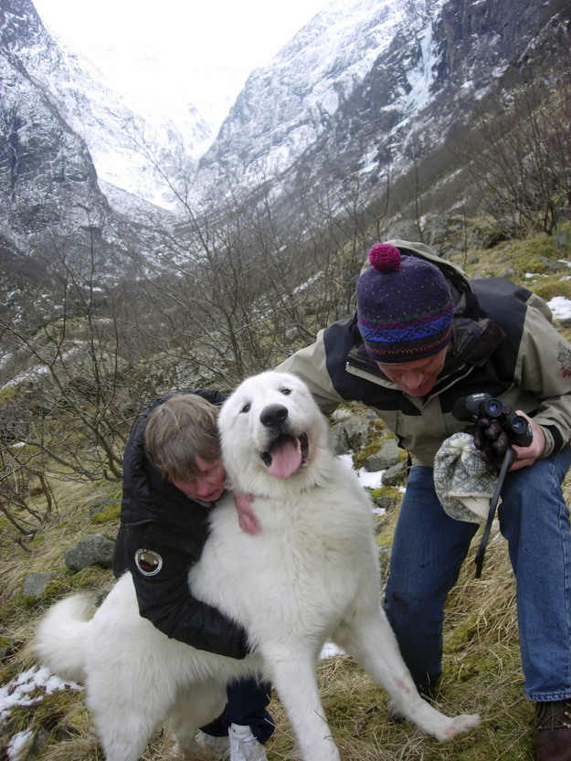 Хозяева обнимают полуторагодовалого пса, которого спасли после того, как он застрял на горном выступе.