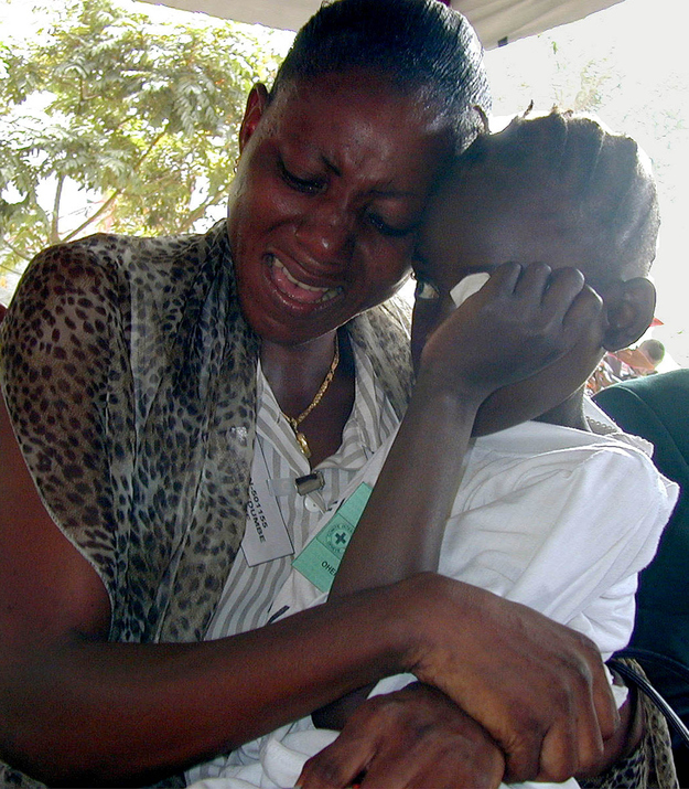 Одетте Эдумке воссоединилась со своей 8-летней дочерью в Конго. Организация Красного Креста воссоединила 25 детей из мятежного города со своими семьями, которых рассоединила война