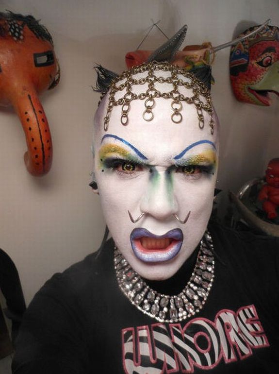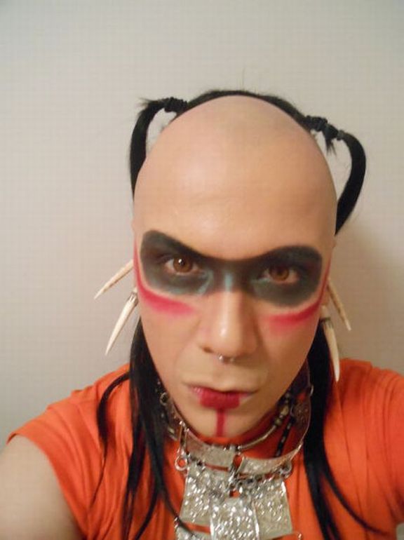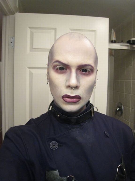 Каждый человек по-своему уникален, но этому парню явно мало такой индивидуальности. Он очень любит перевоплощаться в жуткие образы, которыми можно было бы до смерти перепугать всем местных бабулек :) Хотя, честно говоря, я бы тоже не сильно хотел с ним встретиться ночью в темном переулке.