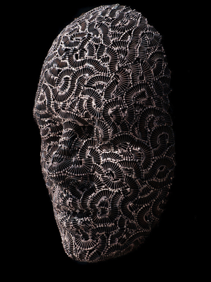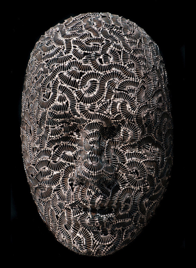 Художник Дэйл Даннинг из Онтарио сочетает типографию и скульптуру, создавая свои изысканные бронзовые и алюминиевые скульптуры. Он делает маски. Но это не обычные маски – они созданы из сваренных вместе металлических деталей.