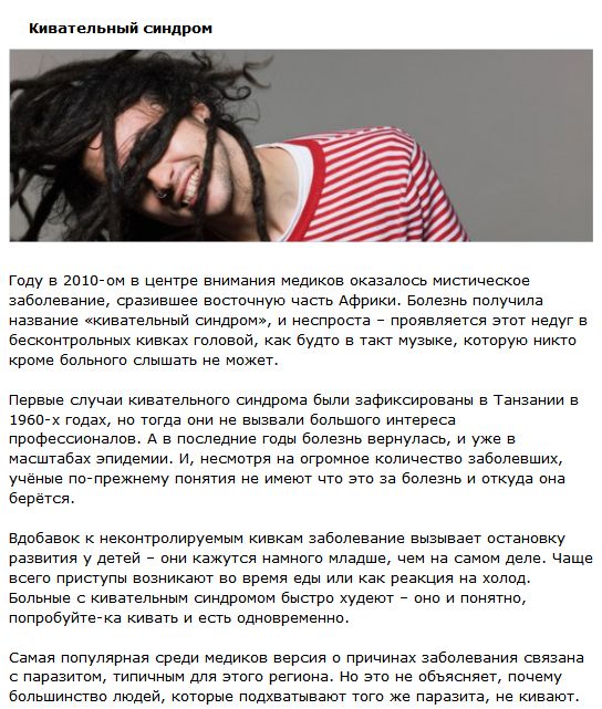 Пять странных заболеваний, которым сложно найти медицинское объяснение жесть болезнь люди 16.10.2012 812 Чего только в жизни не бывает.. Поделиться в соц. сетях