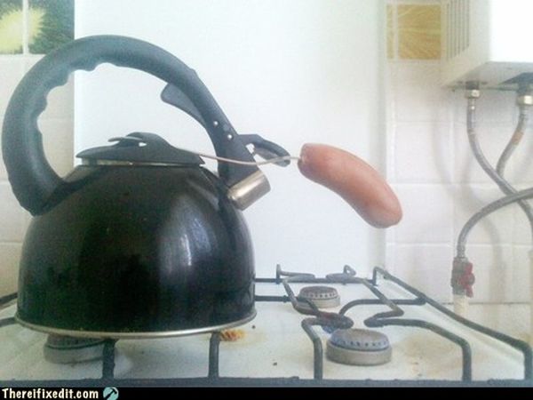 Варят сардельку =)