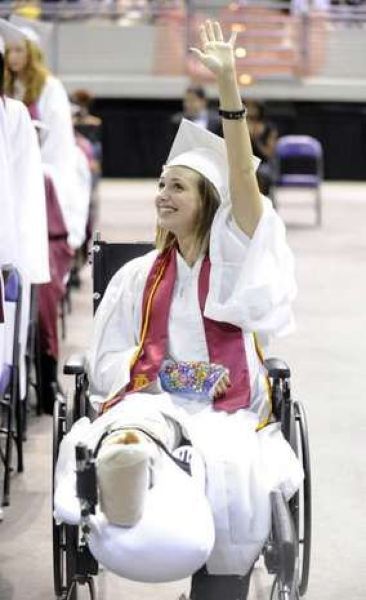 За месяц до выпускного девушка ехала на машине, и тут ей захотелось газировочки, она нагнулась за ней, а в этот момент на встречку выехал пьяный водитель на скорости 160 км/ч+девушка ехала 100 км/ч, в результате произошло ДТП.