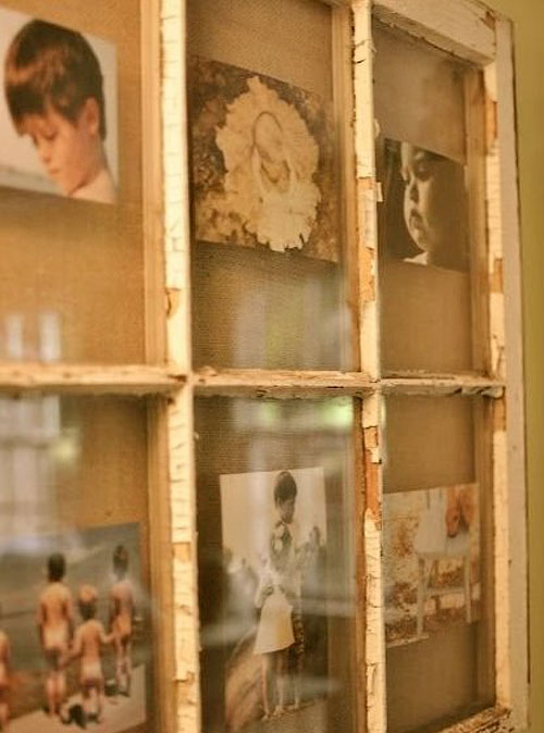 Закрепить фото на старом аутентичном колесе. Колесо, соответственно, вешается на стену.