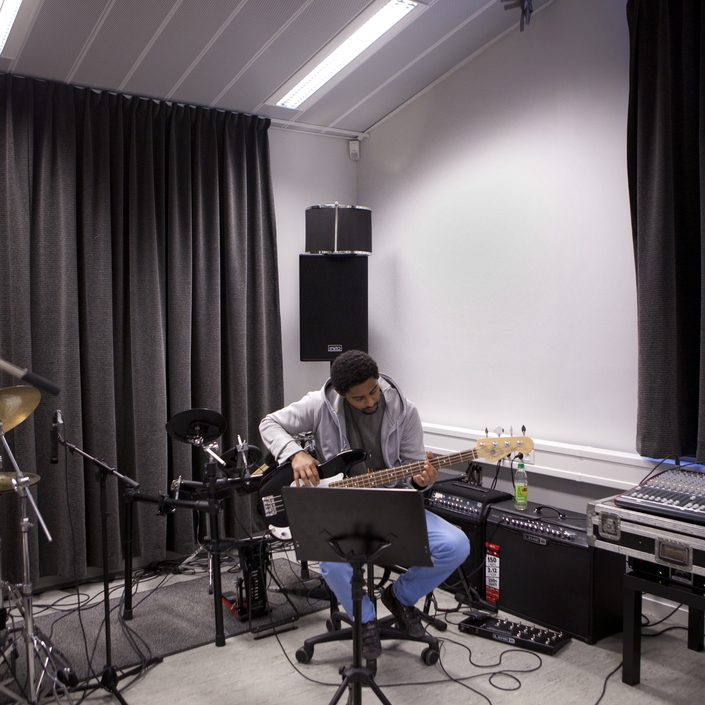 Музыкальная студия, в которой репетирует тюремная группа и записывается ежемесячная радиопередача.