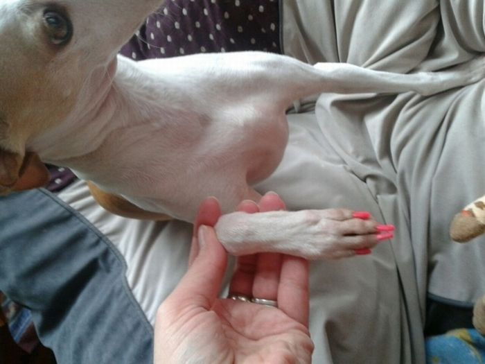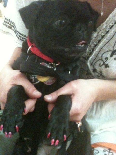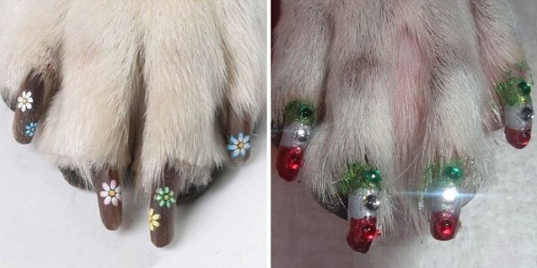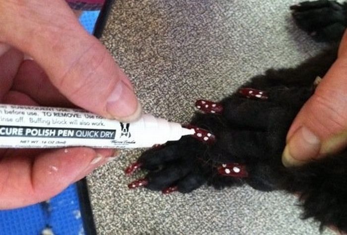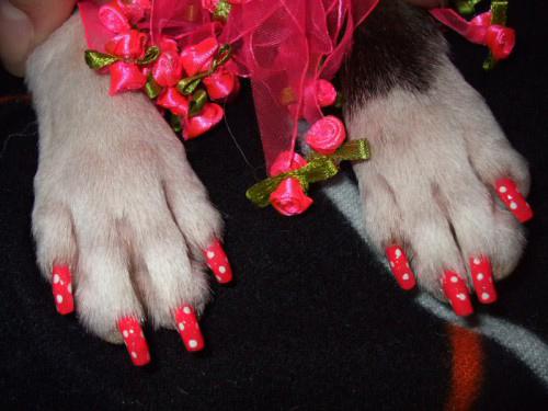 Гламур добрался и до наших питомцев. Интересно, как правильно говорить, собачий маникюр или педикюр? =)