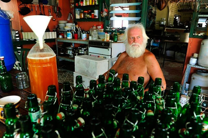Из живых существ у Дэвида есть только один компаньон – его пес Квази. Оставшись один на один с природой, современному Робинзону пришлось многому научиться. Кормится Дэвид плодами деревьев и рыбной ловлей. А еще – варит свое пиво.