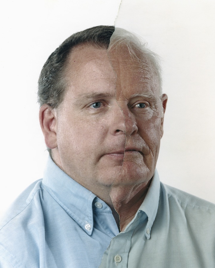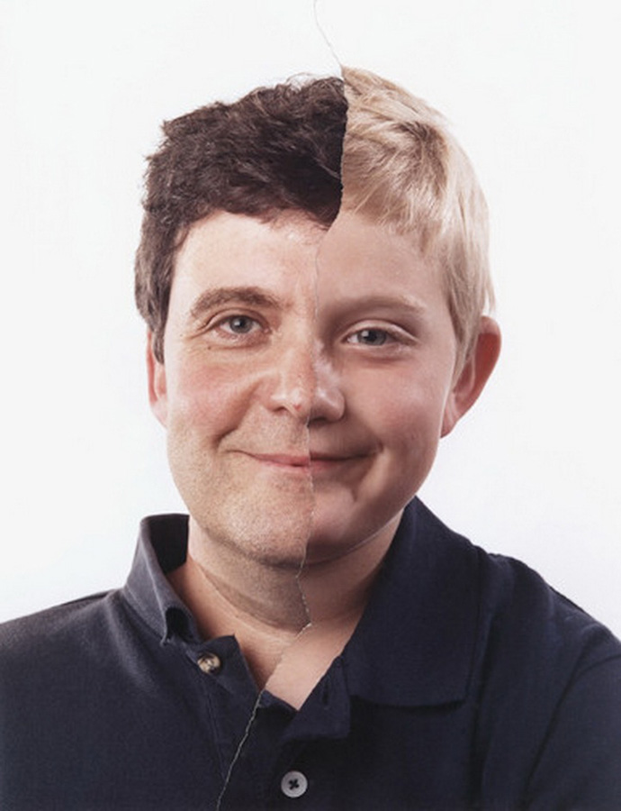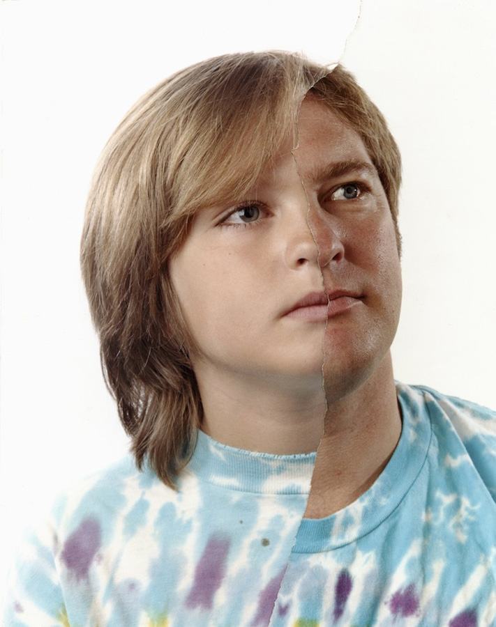 Старение – это зрительно видимый процесс. Но фотограф Бобби Нил Адамс сделал его еще более зрительным, если можно так выразиться. В своем последнем проекте «Семейное древо» он создал серию портретов ближайших родственников. Каждое фото представляет собой «разорванный» снимок, одной частью которого является фото мамы/папы, а второй частью – снимок дочери/сына. Получилось очень интересно. Перед нами – не просто снимки одного человека в стиле «тогда и сейчас», это снимки двух людей в настоящее время, между которыми прослеживаются родственные черты.
