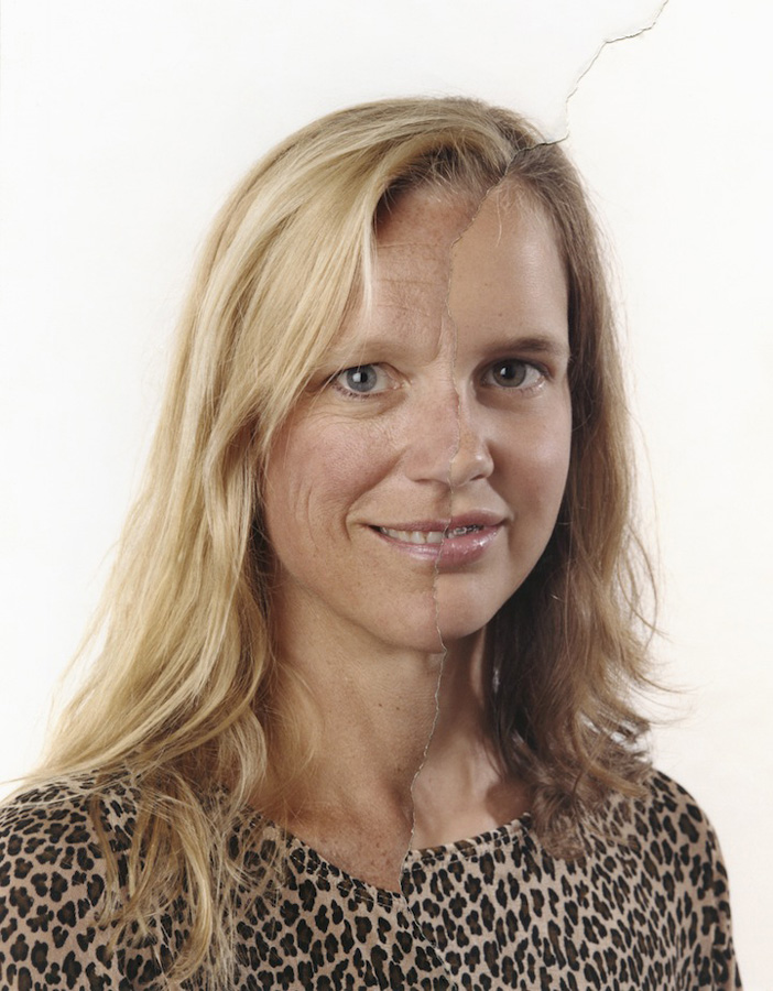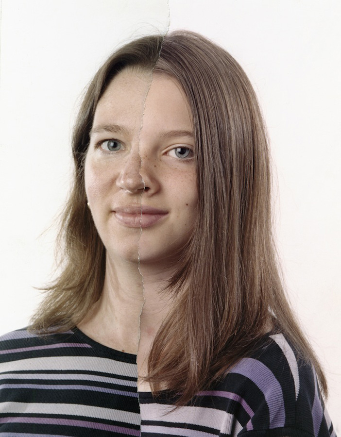 Используя свой коронный способ «сшивания» двух половинок фотографий родственников, Адамс представляет нам «визуальное ДНК, передаваемое от поколения к поколению».