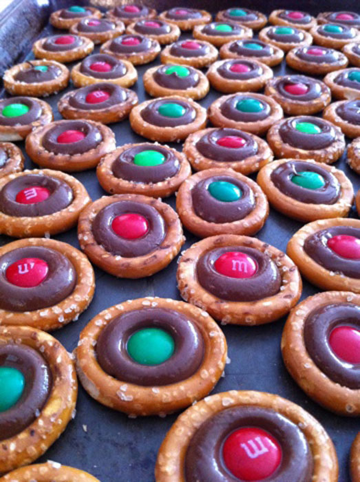 Драже M&M поверх расплавленных в бубликах конфеток Hershey