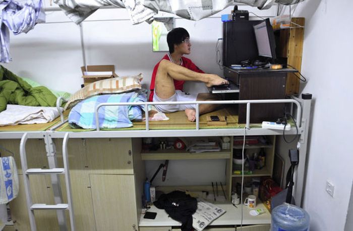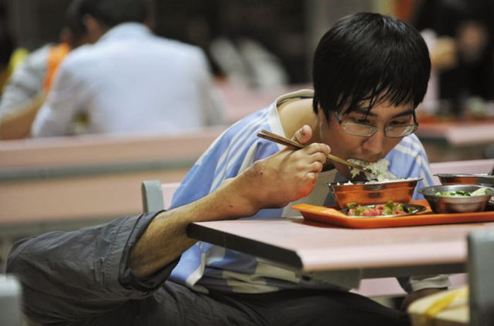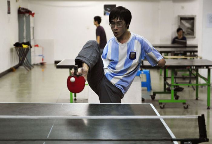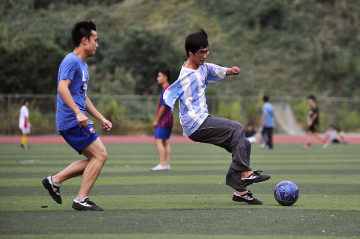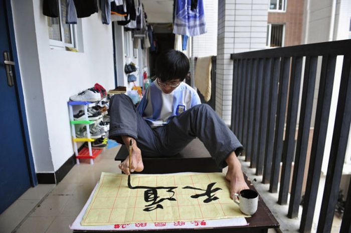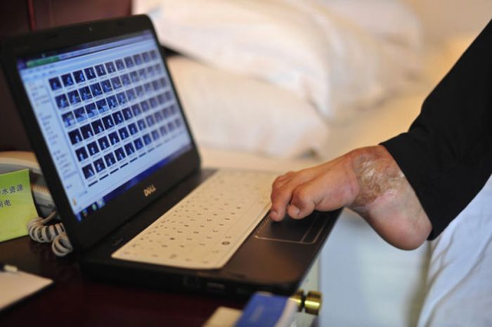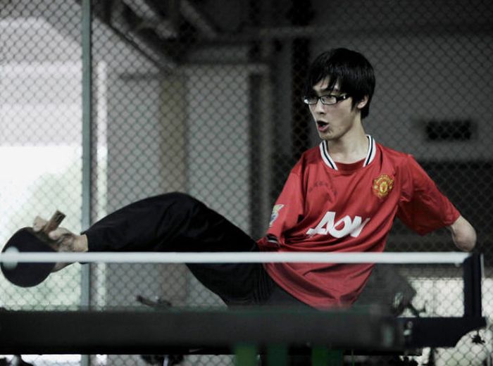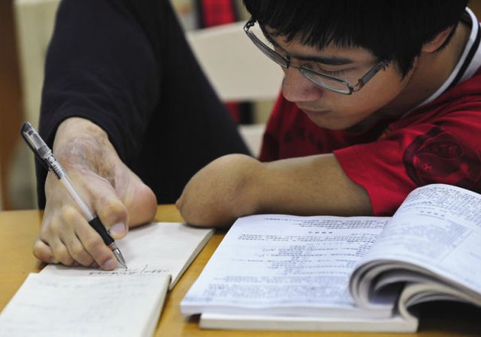21-летний китаец Фан Линг потерял обе руки в автомобильной катастрофе. Он не унывает и продолжает вести обычный образ жизни. Научился писать, играть в теннис, кататься на велосипеде. Глядя на его ритм жизни, складывается такое ощущение.. Что это у меня нет рук! Парень достоин уважения!