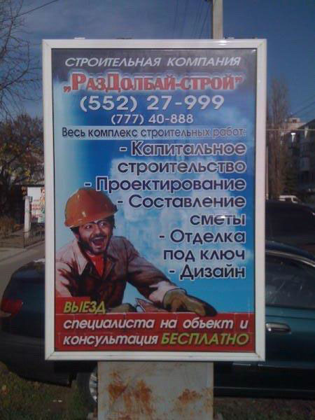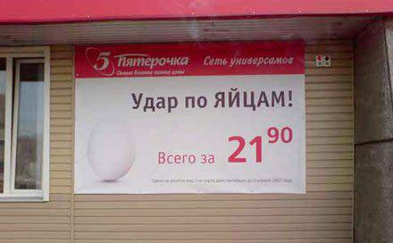 Полный абсурд в русской рекламе Реклама креатив Смешное 11.12.2012 742 Руcская реклама самая беспощадная реклама в мире! Это не реклама конечно а скорее менталитет.. Без комментариев То ли русские креативщики в Сша так позиционируют картошку, то ли просто чья то шутка =). До 18.00 ни-ни! Поделиться в соц. сетях