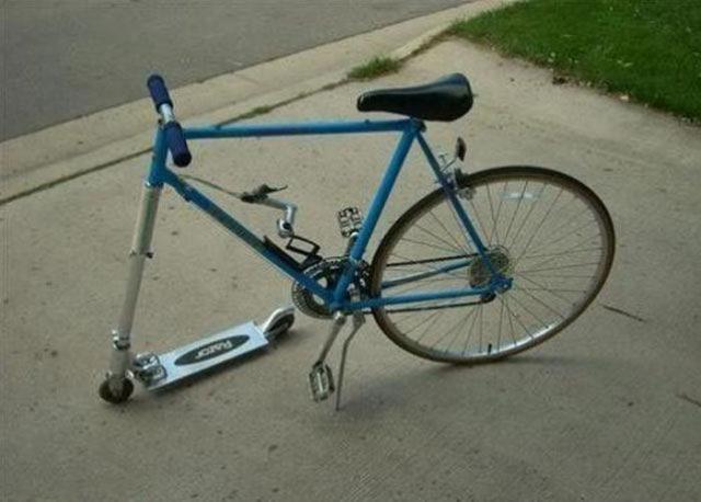 Эти интересные приспособы люди сделали своими руками, одни из них крайне нелепые, а другие вполне имеют право на жизнь, но тем не менне они все сделаны с потрясающей смекалкой! Один велосамокат чего стоит! =)