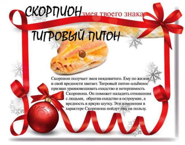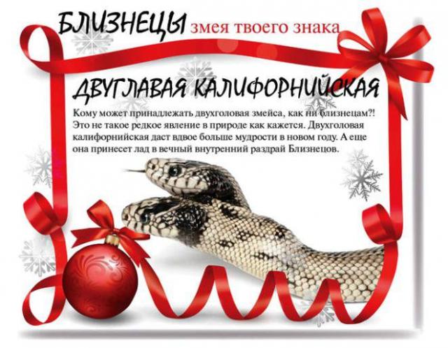 Какая змея соответствует вашему знаку зодиака в предстоящем году интересное необычное 27.12.2012 1040 Довольно интересный гороскоп для каждого знака зодиака, который показывает, каким видом змеи вы будете являться в 2013 году. Поделиться в соц. сетях