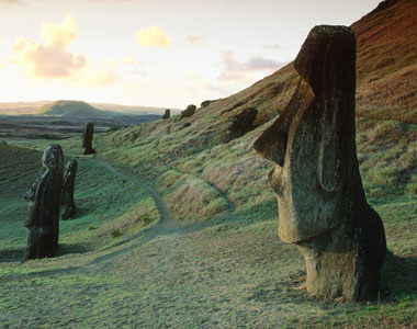 Одним из самых таинственных мест на земле является остров Пасхи, на котором стоят огромные, вырезанные из камня фигуры гигантов, вросшие в землю под тяжестью тысячелетий. Статуи смотрят в небо, словно виновные в каких-то мистических преступлениях. И только каменным гигантам известно, куда исчезли люди, установившие их. На острове Пасхи больше никто не знает секрета изготовления и перемещения, а также установки этих гигантских статуй ростом до 21 метра и весом до 90 тонн. А ведь их нередко перемещали за 20 с лишним километров от карьера, где работали древние скульпторы. Сейчас на острове, где когда-то процветала могущественная цивилизация, едва теплится жизнь, и никто не знает, откуда взялись таинственные строители и куда они потом исчезли.