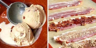 Эксперт мороженого Девид Лебовиц (Devid Lebovitz) решил порадовать огромную армию поклонников бекона и доказал, что бекон тоже вполне годен для морожения. Он придумал мороженое на основе глазированного бекона. И это блюдо все таки завоевало свою популярность.