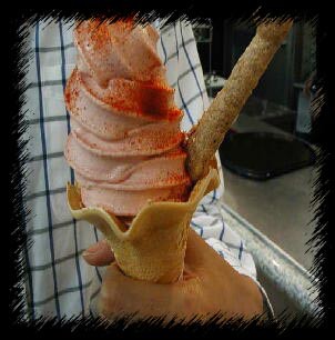 Мороженное с перцем – радость детям. Жирные сливки, яичные желтки, сахар и свежемолотая смесь перца – вот основные составляющие такого мороженого. В процессе замораживания необходимо постоянно перемешивать. Это необходимо для того, чтобы перец равномерно распределился.