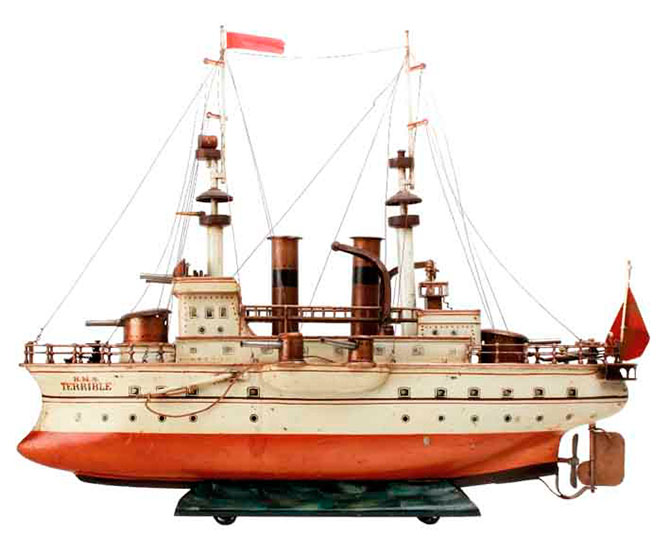 Говорят, как лодку назовешь — так она и поплывет. Видимо, сотрудники немецкой фирмы-производителя игрушек Märklin предчувствовали, что собранный ими в 1905 году корабль H.M.S. Terrible будет впоследствии продан за чудовищную сумму. Он представляет собой копию боевого парового судна, которое входило в состав Королевского военно-морского флота Великобритании и использовалось в годы Второй англо-бурской войны. Игрушка долгое время принадлежала известному коллекционеру Рону Маккринделлу. После его смерти в 2011 году корабль был выставлен на торги и вскоре куплен за сумму, примерно в полтора раза превышавшую ожидания аукционистов. Имя нового владельца «Ужасного» неизвестно: покупатель пожелал оставить за собой право на анонимность.