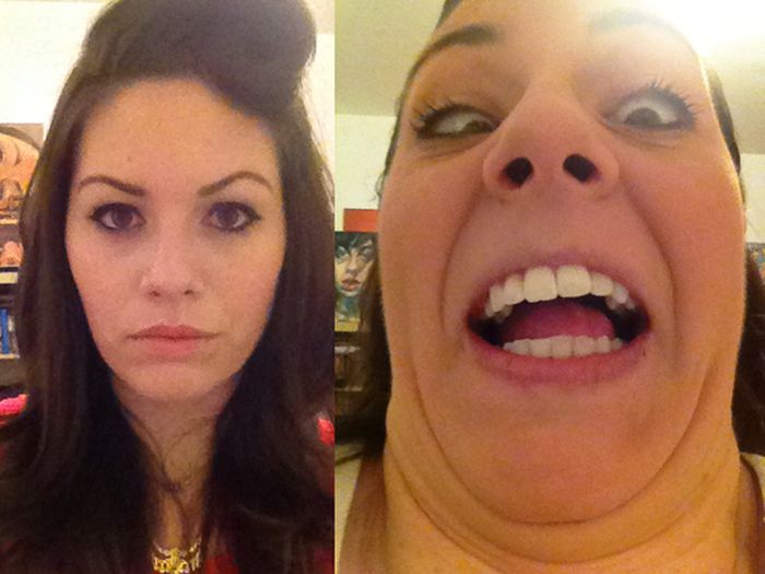 На одном странном женском сообществе девушки выкладывают свои весьма необычные снимки. Они соревнуются между собой, кто на фото выглядит страшнее, скорчив при этом странную гримасу. Порой лицо симпатичной девушки на фотографии меняется настолько, что ее даже невозможно узнать :)