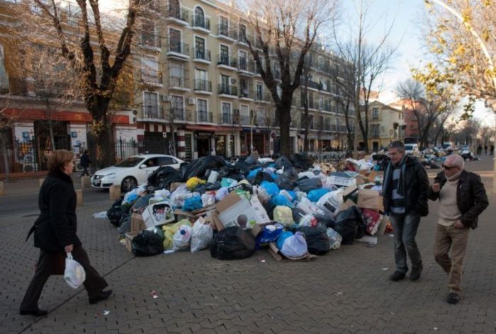 Мусорщики Испании очень критично отнеслись к новому решению правительства, в котором значилось сокращение зарплаты на 5% и увеличение количества рабочего времени. Обиженные работники устроили настоящую забастовку, они перестали убирать вообще. На улицах Севильи накопилось около 6000 тонн мусора. Нереальное зловоние стоит в городе, а также в Херес-де-ла-Фронтера и Гранаде.