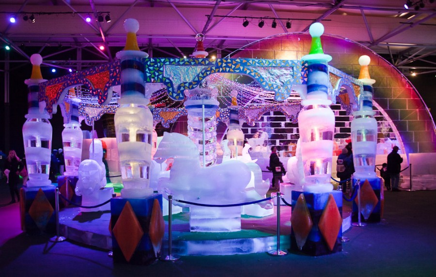 В любом случае, посетить его, думаю стоит. Атмосфера «рождества» из американских фильмов:)) Приятная тихая музыка, общее настроение, как будто попал в сказку. Для детей на территории выставки построены несколько горок, а для взрослых ледяной бар со столиками из льда.