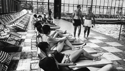 Открытый бассейн олимпийского размера на курорте Гроссингер, построенный в 1949 году за 400 000 долларов (около 5 млн долларов на сегодняшние деньги)