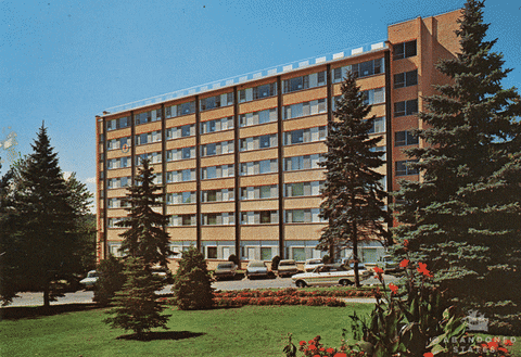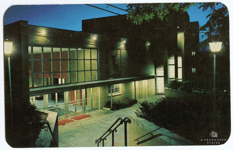Вид с другого конца. На этой открытке написано: "В ультрасовременном здании находятся столовая, коктейль-холл, холлы и офисы"