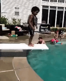 Девушка хотела прыгнуть в бассейн на надувной матрас, но ветер её опередил