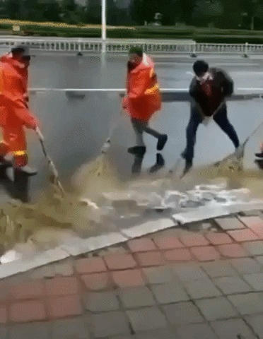 Как дворники гонят метлами лужу