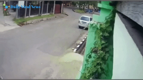 Пара воров сумок на мотоцикле испытывает некоторые трудности во время бегства