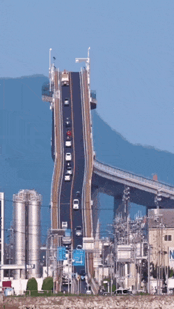 Самый крутой мост в Японии, глядя на который кажется, что машины едут вертикально