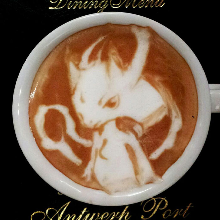 Визуально улучшенные напитки, которые создает Ямамото, действительно кажутся объемными, ведь он не только рисует на коце, но и «лепит» из пенки различные фигуры.